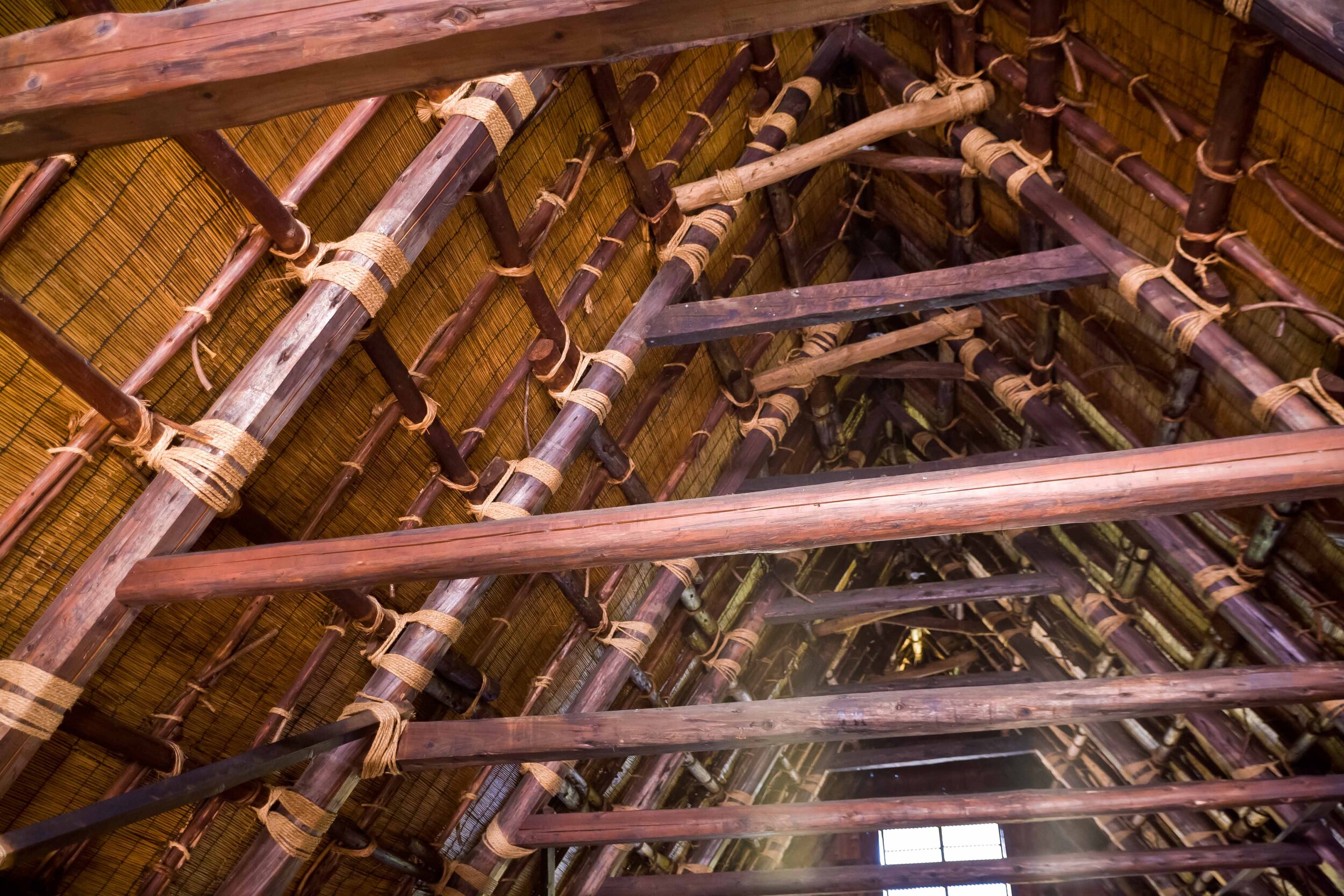 The term gassho-zukuri means praying hands and describes the steep thatch-roofed structures that have been standard for this agricultural area for centuries. The steep pitch is crucial, since winter brings much snow.